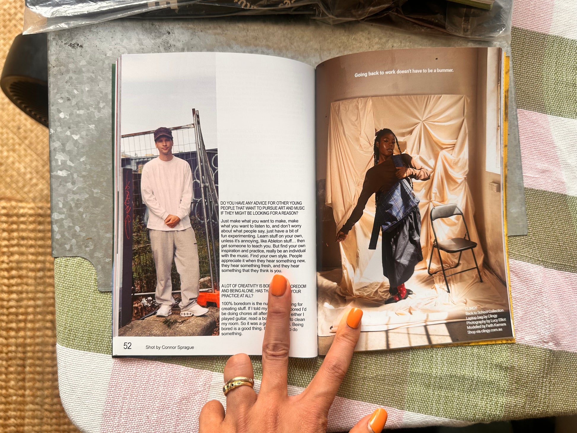 Issue #06 features: Ari Athas [craftsman], Billie Cooper [photographer], Daniel Mateo [dancer/poet], Felynn Zhang [fashion designer/artist], Josef [musician], Mia van Dort-Gillmore [artist] and Yasmine Keong [makeup artist]. Writers: Charli Pope, Ella Avni, Holly Villagra, Joella Marcus, Liv Foust, Rahemma Azwar, Shahrin Shamim. Photographers:Alexander Nicolaou, Connor Sprague, Jacinthe Lau, Sim Kaur, Sylvestre Lattao, Pariss Bostick.